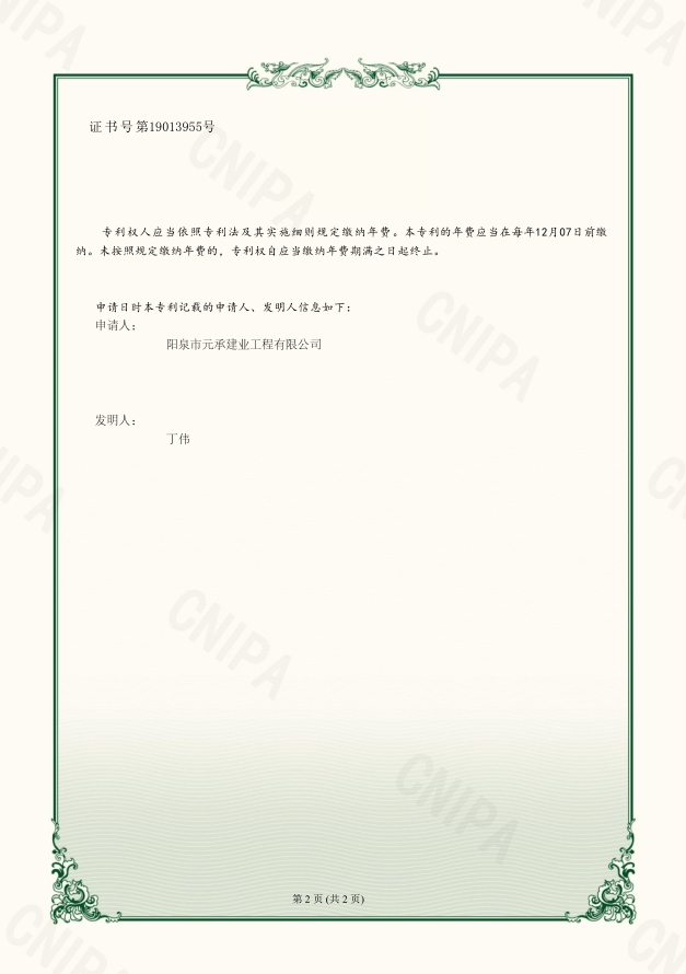 国家知识产权局依照中华人民共和国专利法经过初步审查,决定授予专利权,颁发实用新型专利证书并在专利登记簿上予以登记。专利权自授权公告之日起生效。专利权期限为十年,自申请日起算。